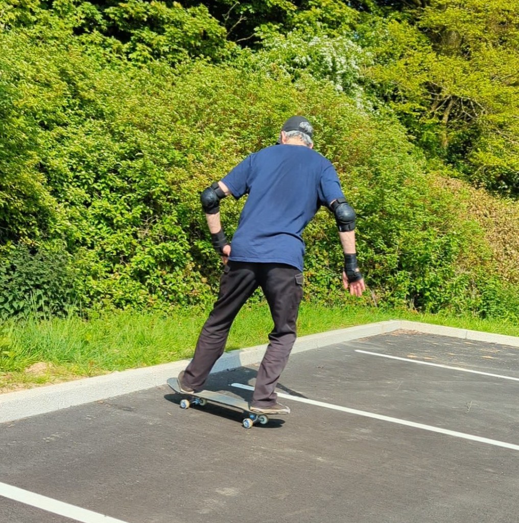 Sure, car parks lack some of the things that make street skating so rich: benches, planters, steps and rails. Nor do they offer much in the way of ramps. For the beginner, though, these aren’t really absences, and what you get instead is plenty of kerbing: great for simple-but-fun starter tricks like drop-offs and kerb nose stalls (both of which I did after a month on the board). And what you lack in variety, you make up in an abundance of space: space to ride, space to slide, to revert – room to work on jumps and flips, without having to worry about pedestrians, or cars for that matter, as long as you pick your time right.